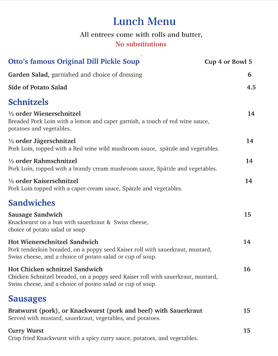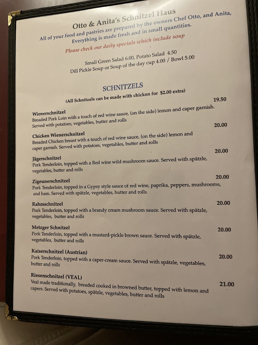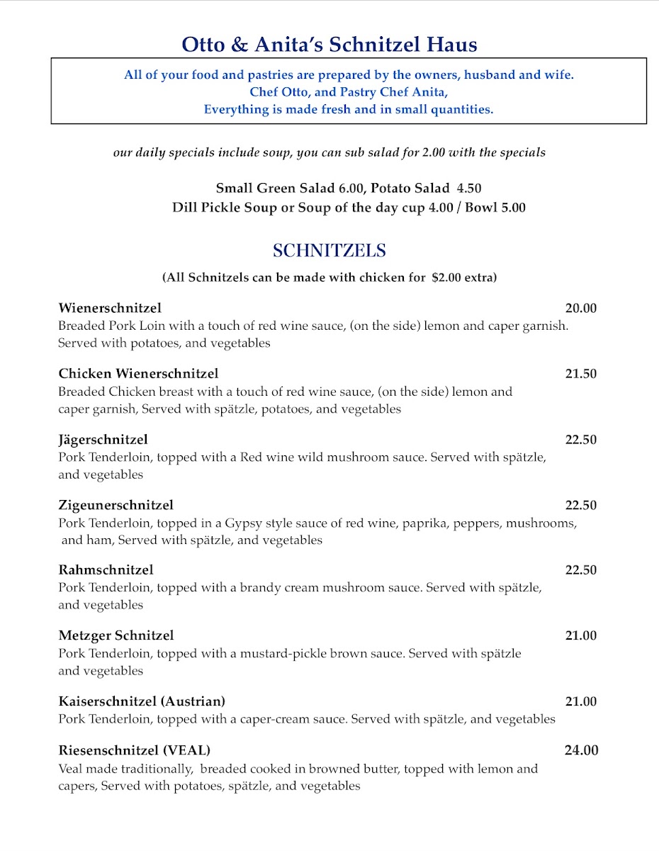 Otto & Anita's Schnitzelhaus Menu